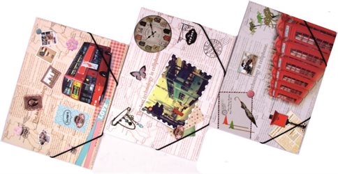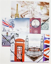 Odkládací mapa s gumou a motivem LONDON/PARIS