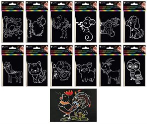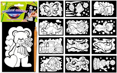 Škrabací obrázky s duhovým podkladem 15x10cm 6670,6671,6672