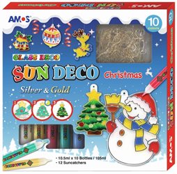 Barvy na sklo-Vánoční sada 10 barev 10,5 ml + 12 sklíček 1483