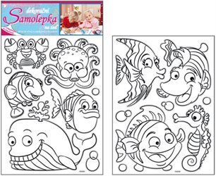 Samolepky na zeď ryby k vymalování 2 archy, 35x25,5cm 1397