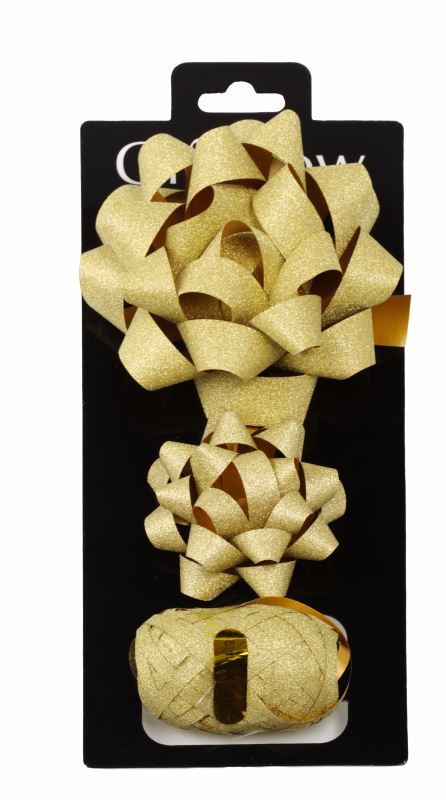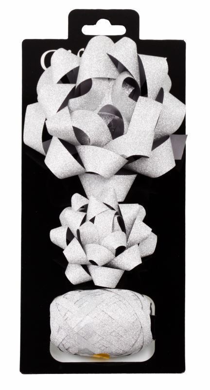 2 rozety a stuha klubíčko Glitrovaná sada k balení dárků