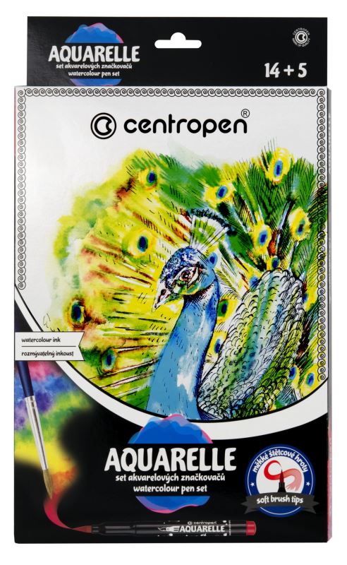 Unikátní kreativní souprava akvarelových značkovačů se štětcovými hroty značkovače jsou plněny inkoustem, který lze na speciálním papíře kombinovat a rozmývat vodou pomocí přiloženého štětce černý liner je vhodný pro dokreslení detailů a kontur na suchém obrázku souprava obsahuje 12 značkovačů, 1 štětec, 1 Detail liner a 5 ks speciálního papíru pro akvarelovou techniku šířka stopy 1 - 9 mm .