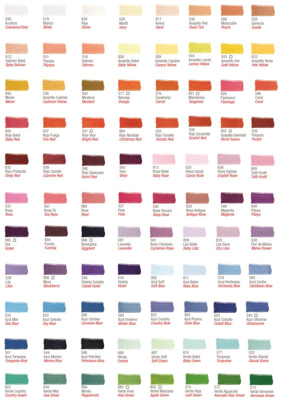 Nabízíme velice širokou škálu barev cca 150 ks včetně fluorescentních, glitrových a metalických. Jedná se o velice kvalitní barvy na textil od brazilského výrobce.