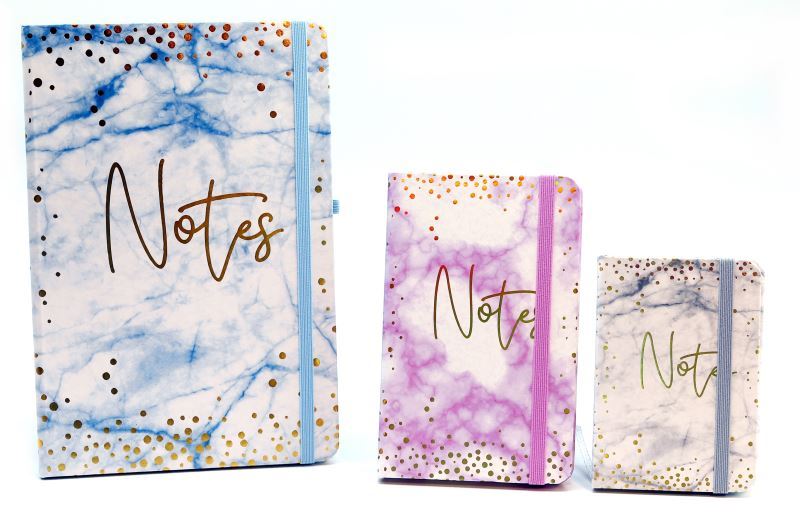 Linkovaný diář (záznamní kniha), praktické uzavírání na gumičku, elegantní vzhled a moderní design, 80 listů, linkovaný papír shamoa. Vhodný pro každodenní zápisky doma, v kanceláři i ve škole. Mix 4 barev růžová, modrá, zelená, šedá, vzor mramor. Cena za 1ks.
