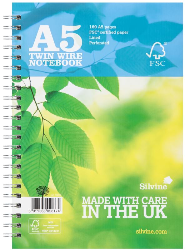 Luxusní kroužkový blok, linkovaný, boční spirála, děrování, perforace, 80 ls, papír 80g. FSC certifikace papíru. 5 ks v balení, vnější 20 ks. Vyrobeno v UK.