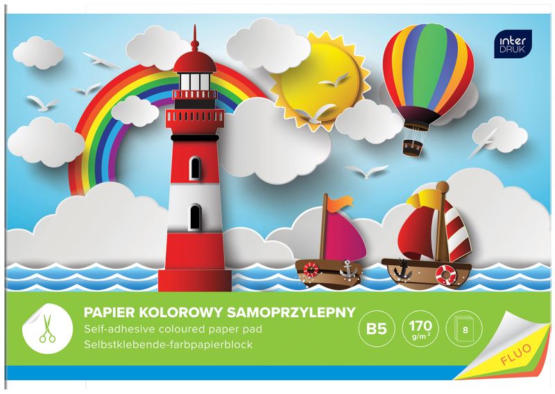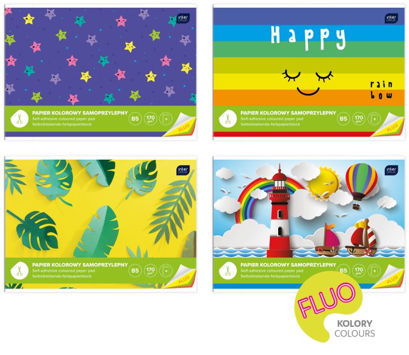 Blok plný kreativní zábavy, 8 listů neonových papírů - samolepících.