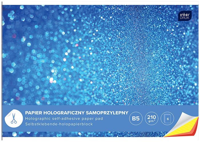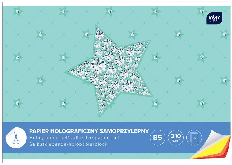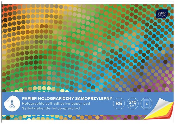 Blok plný kreativní zábavy, 6 listů holografických tvrdých papírů - samolepících.