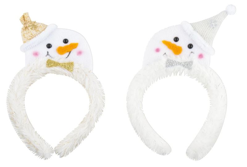 Vánoční čelenka, bílá, plyšová, s motivem sněhulák