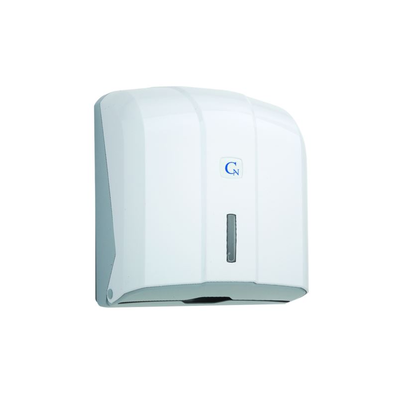 Rozměry hloubka, šířka, výška: 130x270x280 mm. Nástěnný zásobník na papírové ručníky"ZZ" v rozměru 23x25cm, případně univerzální i pro jiné rozměry a skaldy. Vyroben je z bílého ABS plastu se světle šedou základnou. Má elegantní vzhled a při malých rozměrech je schopen pojmout až 400 ks ručníků.