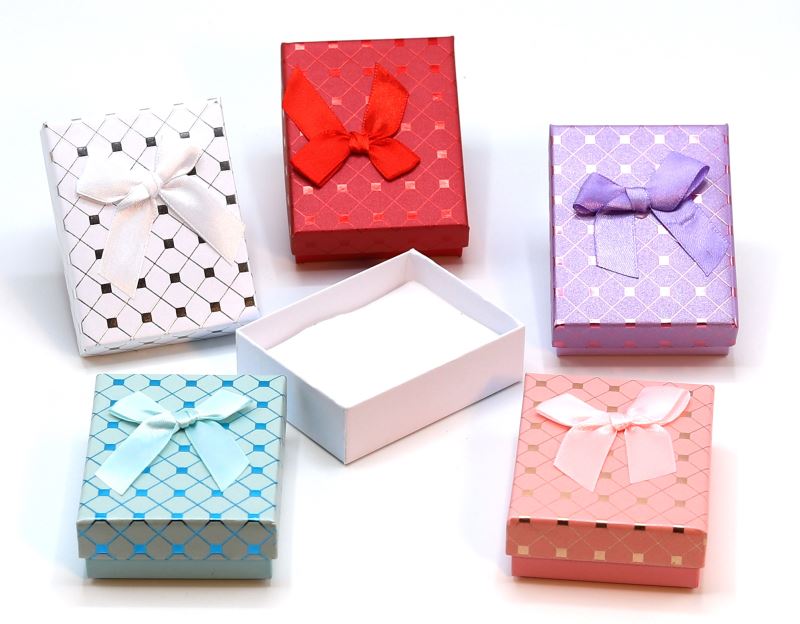 Luxusní malá dárková krabička s laserovým lesklým potiskem a textilní mašličkou, vhodná pro klenot, či pro malý dárek.
