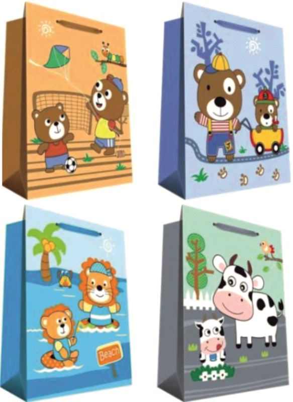 Dárková dětská papírová taška, s barevným provázkovým uchem, motiv párty, mix 4 motivy, viz obrázek, bal 12ks, cena za 1 ks.