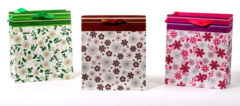 Papírová dárková taška jemné květy - glitr, mix 3 barvy, viz obrázek.