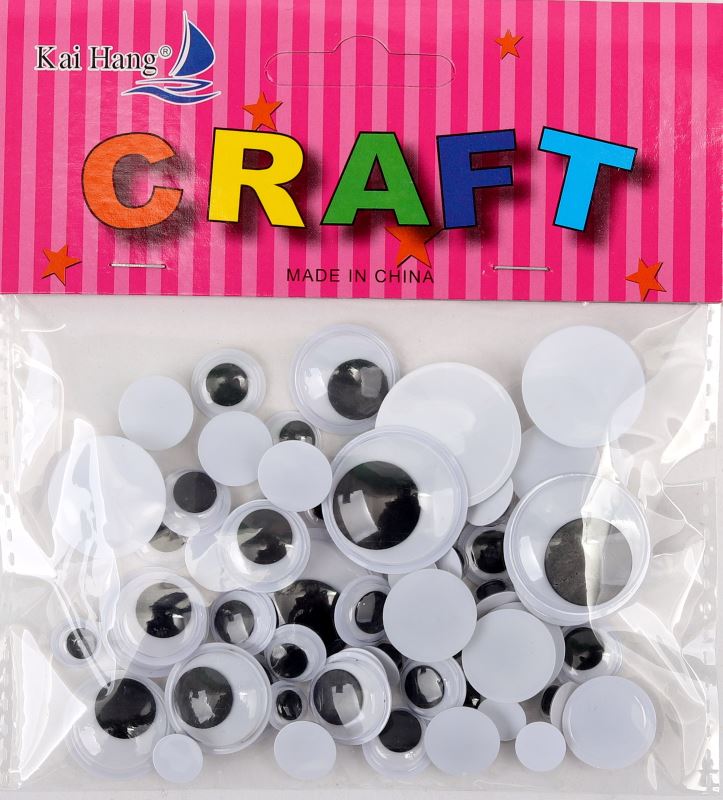 Plastové oči, pohyblivé, různé velikosti. Lze je nalepit a oživit tak své výtvarné práce. Vhodné pro kreativní tvoření s dětmi ve školách i dílnách i doma.