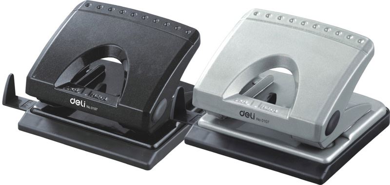 Celokovová, stolní děrovačka, s kapacitou 25 listů, nastavitelné měřítko výsuvné, barvy šedá, černá.