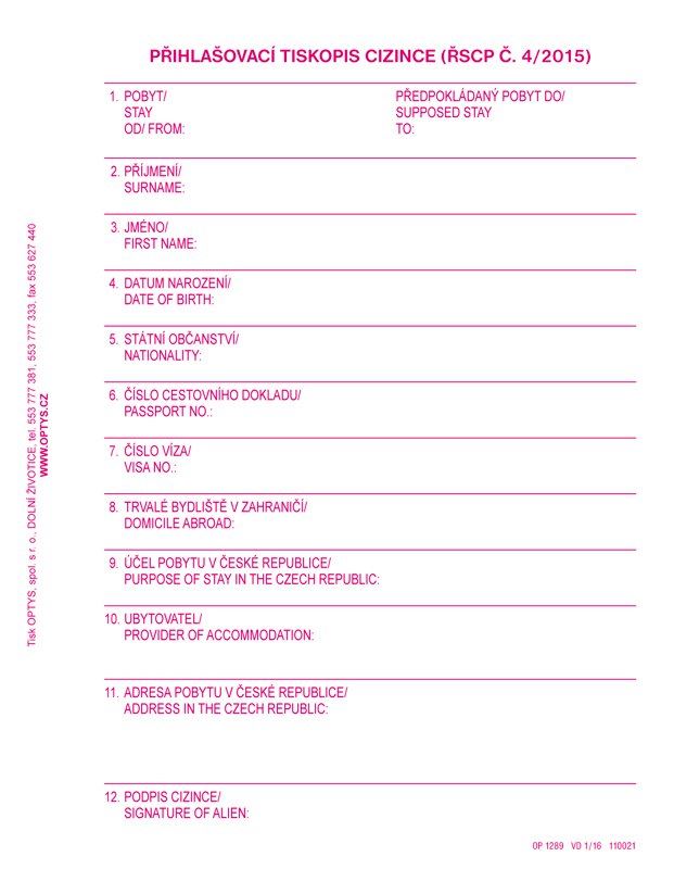 Dříve Ubytovací kniha pro cizince,samopropisující tiskopis,blok 2x50 listů,formát 1/3 A4,nečíslovaný.