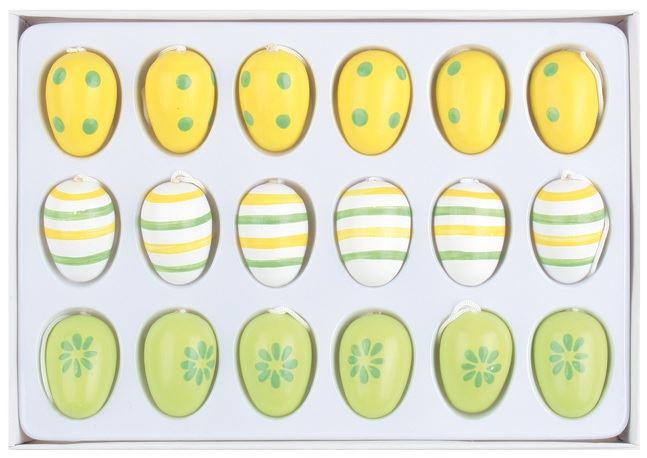 Dřevěná velikonoční vajíčka k zavěšení 2,5cm, 18 ks žluto/zelená