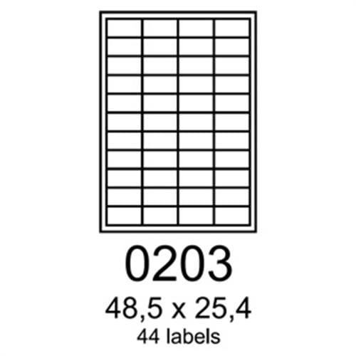 100 listové balení. Vhodný pro černobílý i barevný tisk. Etikety samolepicí, vyrobeny jsou z bílého matného papíru. Materiál je vhodný pro potisk ve všech běžných typech laserových tiskáren. Je ideální pro malonákladový tisk plněbarevných etiket.