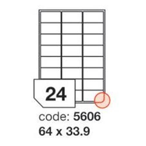 100 listové balení. Vhodný pro černobílý i barevný tisk. Etikety samolepicí, vyrobeny jsou z bílého matného papíru. Materiál je vhodný pro potisk ve všech běžných typech laserových tiskáren. Je ideální pro malonákladový tisk plněbarevných etiket.