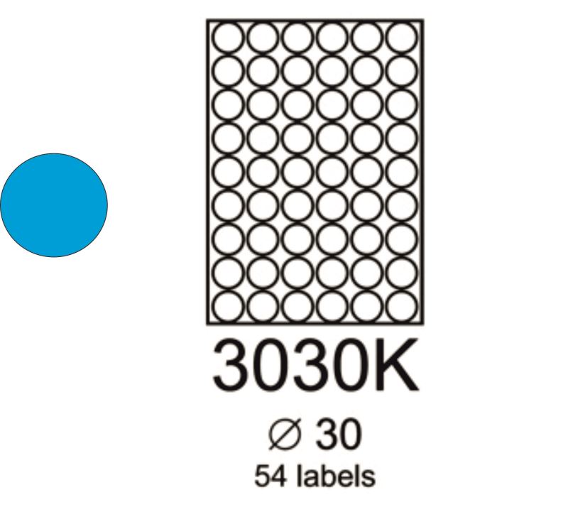 Etikety RayFilm kruhy 30mm modré matné A4 100ks R01233030KA