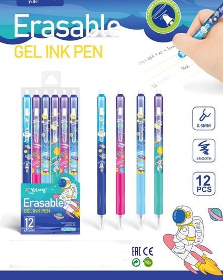 Gumovací psací kuličkové pero, kliker, ve 4 barevných provedeních, viz obrázek, psací stopa modrá 0,5mm, píše hladce, jednodušše lze vygumovat a text opravit. Pero má gumový protiskluzový trojhranný úchop, barevná kombinace viz obrázek. Balení 12ks, cena za 1ks. Náhradní náplně, objednací č: 980014