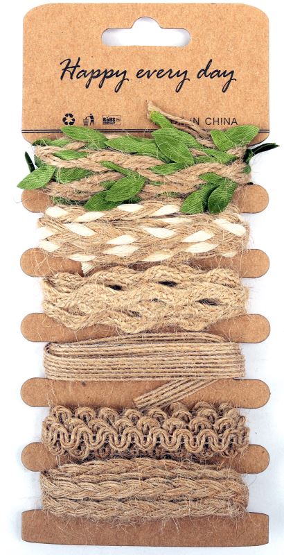 Sada 6 druhů kreativní jutové stuhy na kartonu, motiv viz obrázek. Délka návinu cca 1metr.