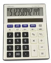 Stolní kalkulátor s nakloněným, snadno čitelným, velkým displejem.