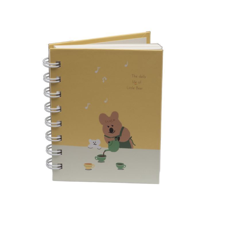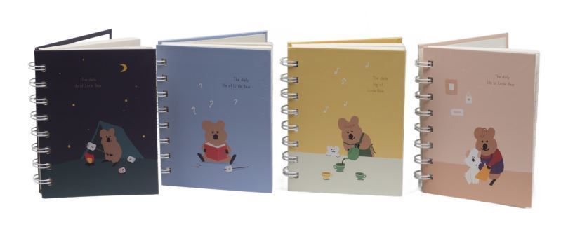 Tvrdé desky zajišťují odolnost a ochranu stránek, zatímco dvojitá boční spirála umožňuje snadné otáčení listů a pohodlné psaní.