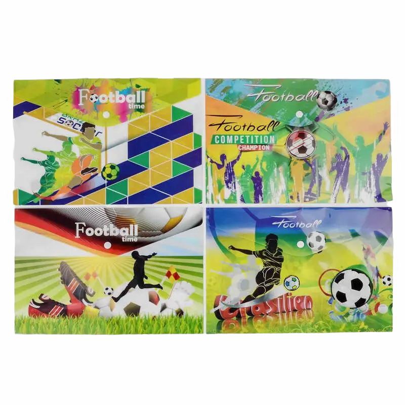 Kapsa na dokumenty, velikost A4, zapínání na patent. Mix 4 druhy fotbalových obrázků.