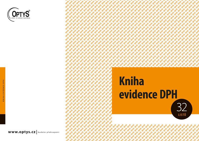 Kniha evidence DPH A4 OP 1019. Nepropisující tiskopis. Formát A4 na šířku. Oranžová obálka. 32 listů.