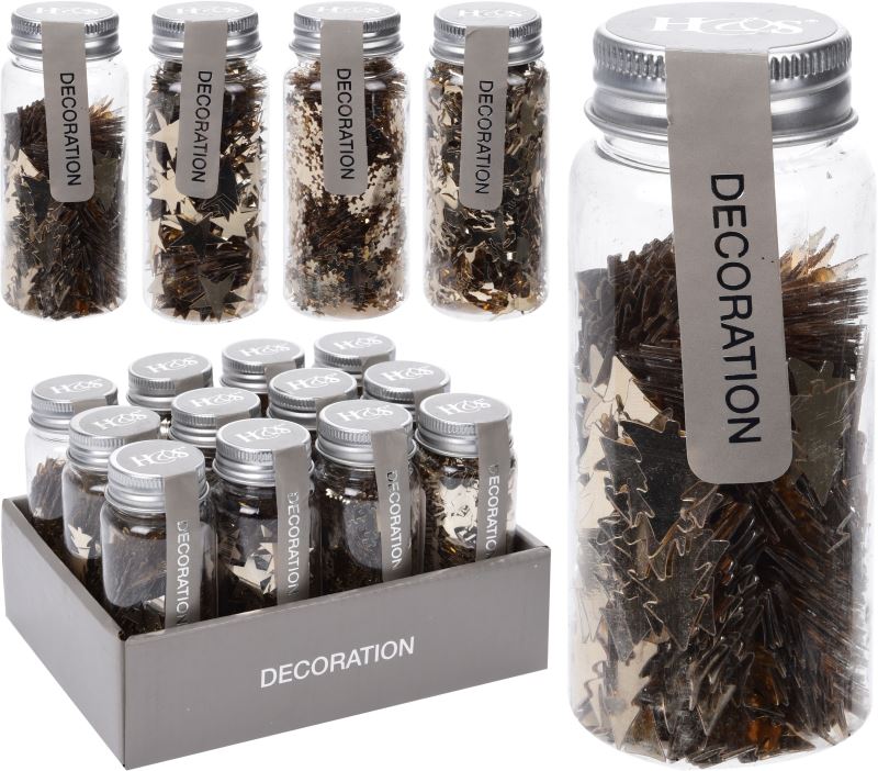 Luxusní vánoční konfety, ve skleničce, mix motivů, zvězdy, vločky, stromky, sobi
