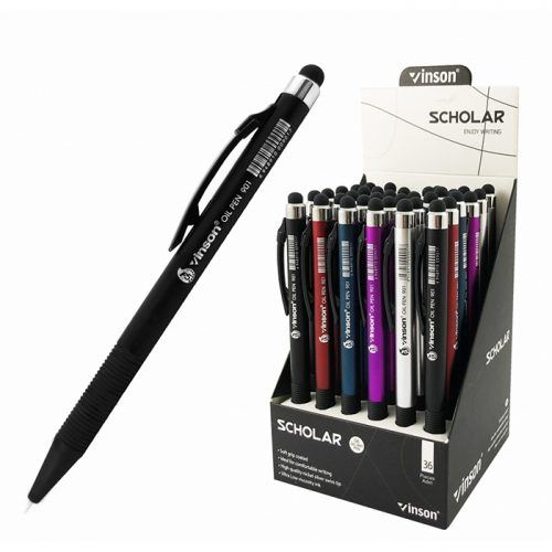 Plastová kuličkové psací propiska Vinson, vysoká kvalita, gelové olejové složení náplně (oil gel inks pen) mix barev. Balení 36 ks v papírové krabičce. Cena za 1 ks.