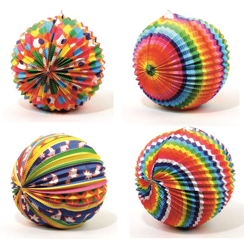 Lampion kulatý, papírový, skládaný, průměr 30cm mix 4 motivů, balení 1ks.