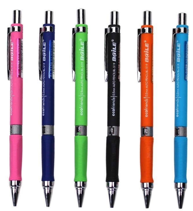 Plastová mikrotužka, trojhranný úchop, s vysouvacím ložem 0,5 mm HB. Balení 36 ks v blistrové krabičce. Mix 6 trendy barev.