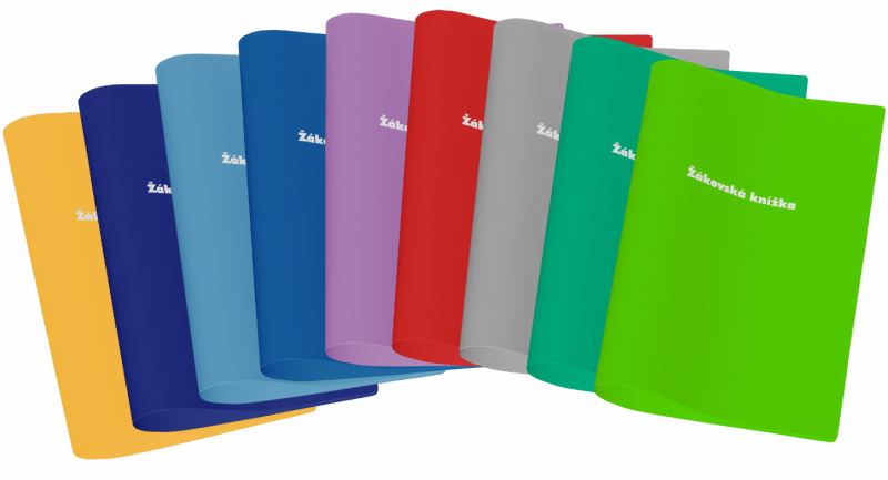 Obal na žákovskou knížku z vinylové fólie v různých barvách. Nápis je potištěn sítotiskem. mix barev