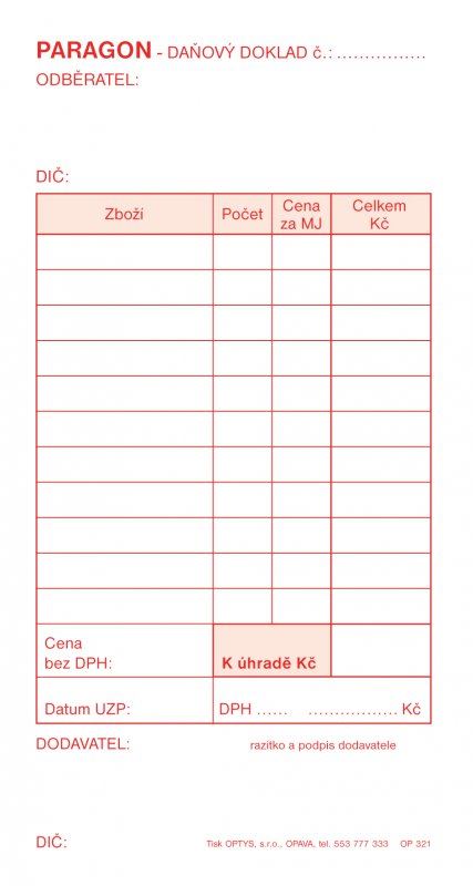 Obchodní paragon, samopropisovací, 50 listů 1321