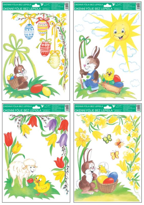 Velikonoční ozdobná rohová fólie na okno. Mix 4 motivů, viz obrázek.