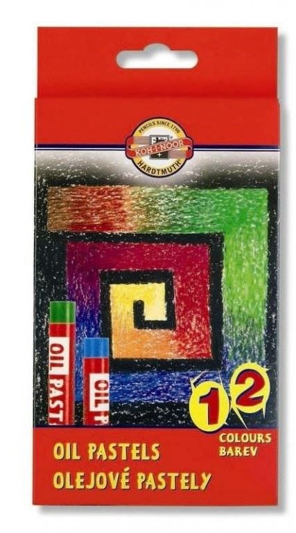 Sada olejových křídel pro školní použití, zdobení oken a umělecké kreslení. Sada 12 kusů olejových křídel o rozměrech O 8,9 mm, délka 60 mm. Každá olejová křída je zabalena do červeno-bílého štítku s černo-červeno-bílým textem KOH-I-NOOR HARDTMUTH OIL CHALKS. Olejové křídy jsou baleny v papírové krabičce s euro-závěsem ve 12 odstínech. Vzhledem k duševním a fyzickým schopnostem dítěte může být produkt vložen do úst a kousnut / zlomen. Dítě může pokousaný / zlomený fragment polknout. Polykaný fragment prochází trávicím traktem bez jakéhokoli účinku. Rozměr 1 kusu O asi 8,9 mm, délka 60 mm.