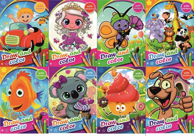 Omalovánky A4 se samolepkami mix 8