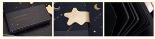 Černý efektní diář / památník - zápisník s černými listy, 100g papír, 128str, vhodný na poznámky psané bílou (stříbrnou, zlatou, gelovou fluorescenční atd.. tužkou), Night Star desky - 4 druhy.