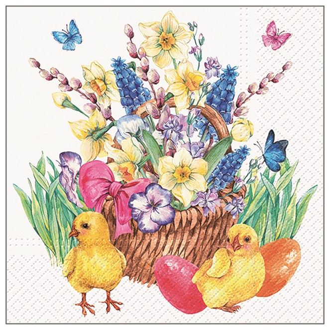 Papírové ubrousky velikonoční 33x33cm kytice a kuřátka