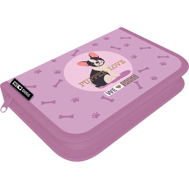 Školní penál textilní, jednopatrový (jeden zip) , uvnitř penálu jsou další dvě klopy s gumičkami a úchyty na pera a psací potřeby, gumy, pravítka a nůžky. Rozměr penálu je 195mm x 130mm x 30mm, váha 0,21kg
