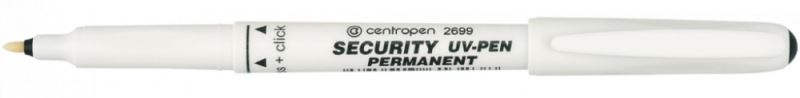 Centropen 2699/2 UV set. Slouží zejména k prevenci při ochraně majetku. Obsahuje popisovač Security UV-PEN s válcovým hrotem o průměru 2 mm a s inkoustem, jehož stopa písma je viditelná pouze při osvícení přiloženou UV lampou.