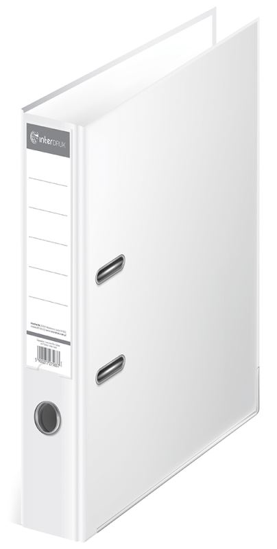Pákový pořadač formátu A4 Interdruk - vyroben z lepenky, potažen polypropylenovou fólií (100 μm), síla lepenky: 1,9 mm , gramáž lepenky: 1 170 g/m². Vysoce kvalitní páková mechanika s 5letou zárukou. Šířka hřbetu: 75 mm a otvor pro uchopení s vyměnitelným oboustranným hřbetním štítkem. Rozměry: 285x320×75 mm.