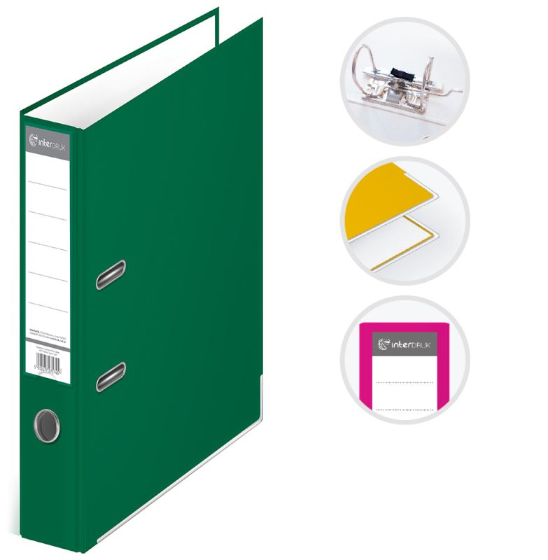 Pořadač pákový Interdruk A4 75mm Zelený