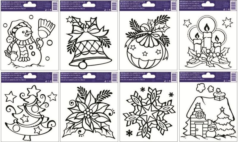 Předlohy na malování na sklo s vyvýšenou konturou vánoční 14x14cm 1588