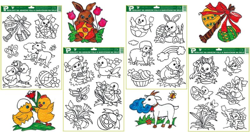 Předlohy na malování na sklo s vyvýšenou konturou velikonoční 42x30cm