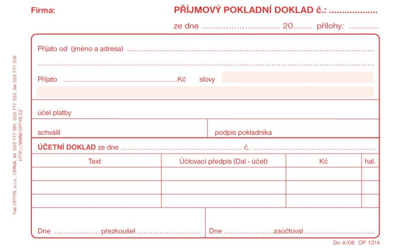 Příjmový doklad A6, samopropisovací, 50 listů 1314