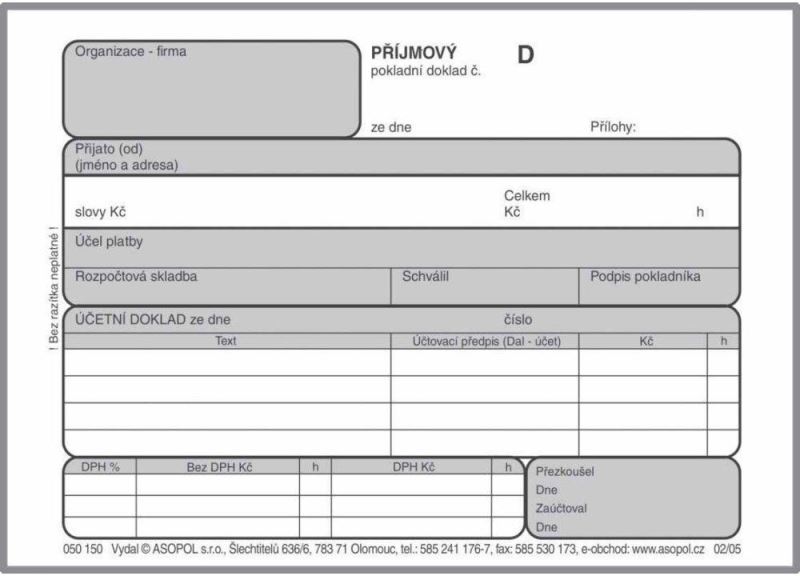 Příjmový pokladní doklad nečíslovaný Asopol
