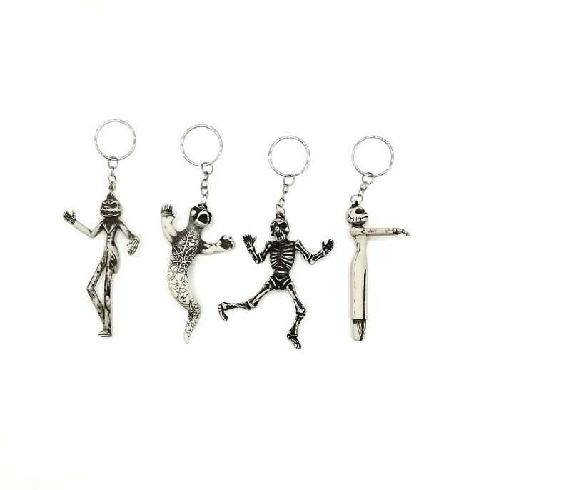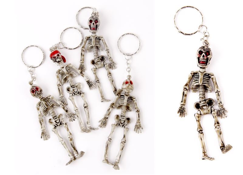 Přívěsek kostra, zombie, plastový, 9cm velký na kovovém kroužku.