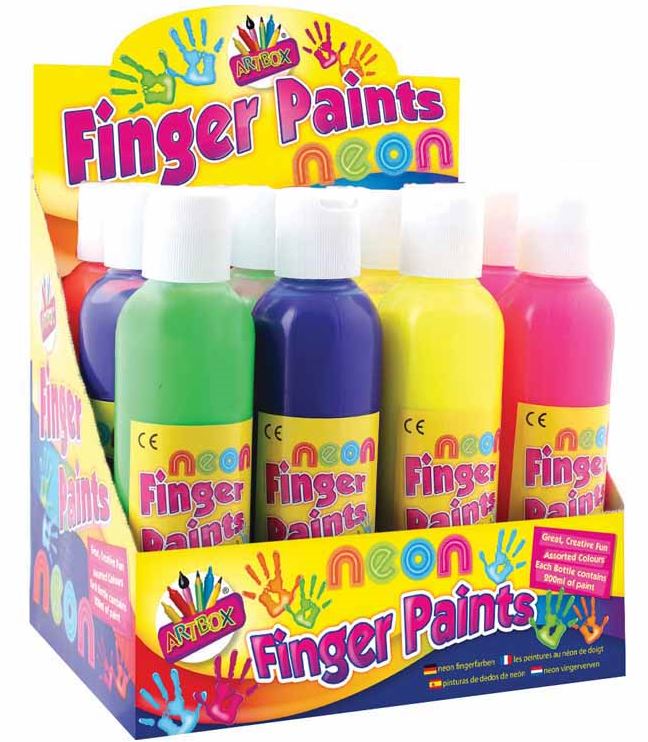 Barvy určené pro malování prsty, neonové barvy - modrá, zelená, žlutá, růžová, 200ml, balení 12ks, cena za 1ks